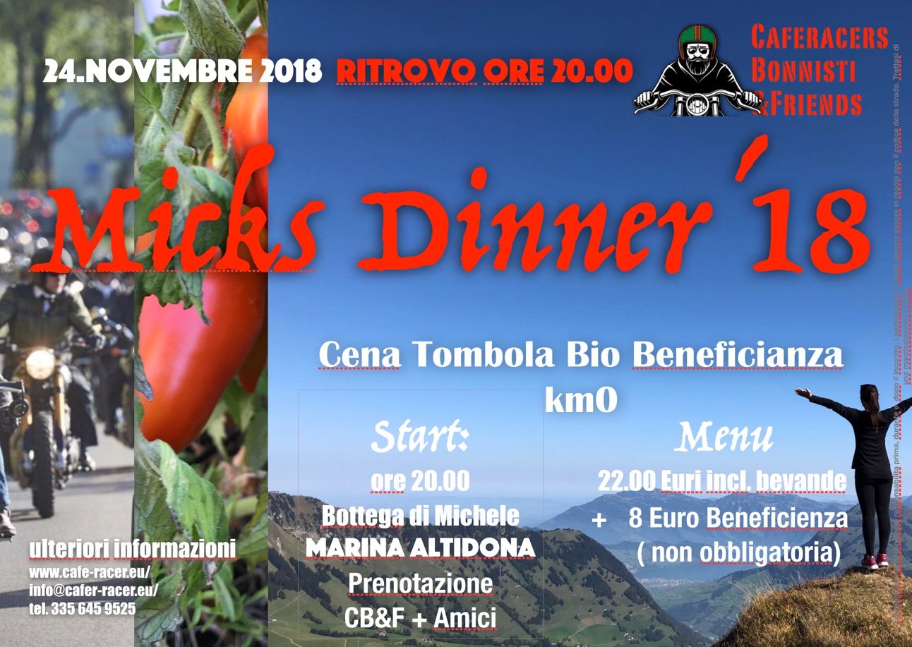 PROGRAMMA: Micks Dinner – Sabato 24.11.2018 – ore 20.00 ( la Bottega di Michele)